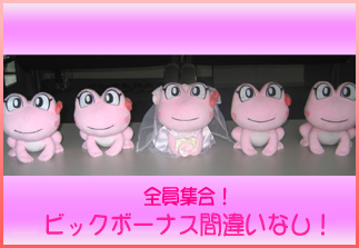スロットファンなら知らない人はいない!という有名なカエルのキャラクターです。