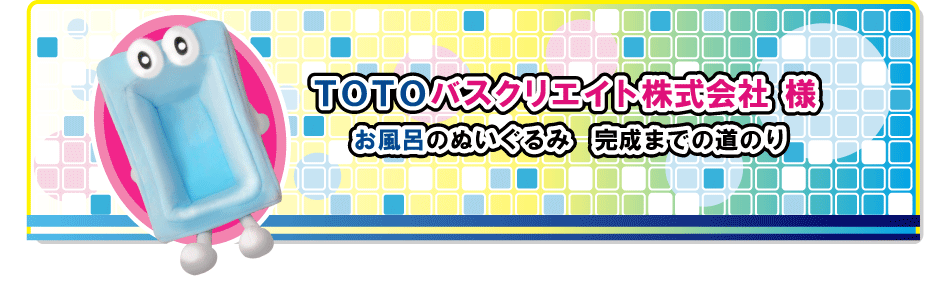 お風呂の製造会社で有名なTOTOバスクリエイト様からご依頼を受け、ぬいぐるみを制作させていただきました。バスタブの形をしたとてもキュートなキャラクターです。 ぬいぐるみ完成までの過程をご紹介させていただきます。 ※TOTOバスクリエイト様の掲載許可をいただいております。