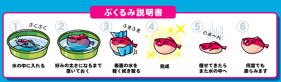 ぷくるみ!使い方は簡単!水の中に入れるだけ!冷蔵庫で冷やして使えば、夏を快適に過ごせるよ!