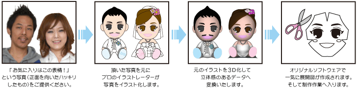 ※タキシード・ウェディングドレスはプラス2,000円 ※但し、2体セットの場合は無料にて作成致します。 |