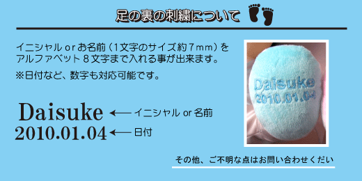 服・足裏等へのワンポイント刺繍は無料でサービス致します。
