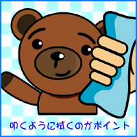 タオルを水でぬらして、ぬいぐるみに軽くたたいてみる。