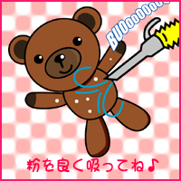 ⑥干す ★ カビ・ダニを予防する干し方 ぬいぐるみの上に黒い布をかぶせて日干しする。